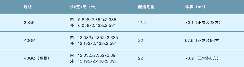 可以選擇單獨包集裝箱運輸妥當,性價比高我們通常使用以下三種箱型的集裝箱