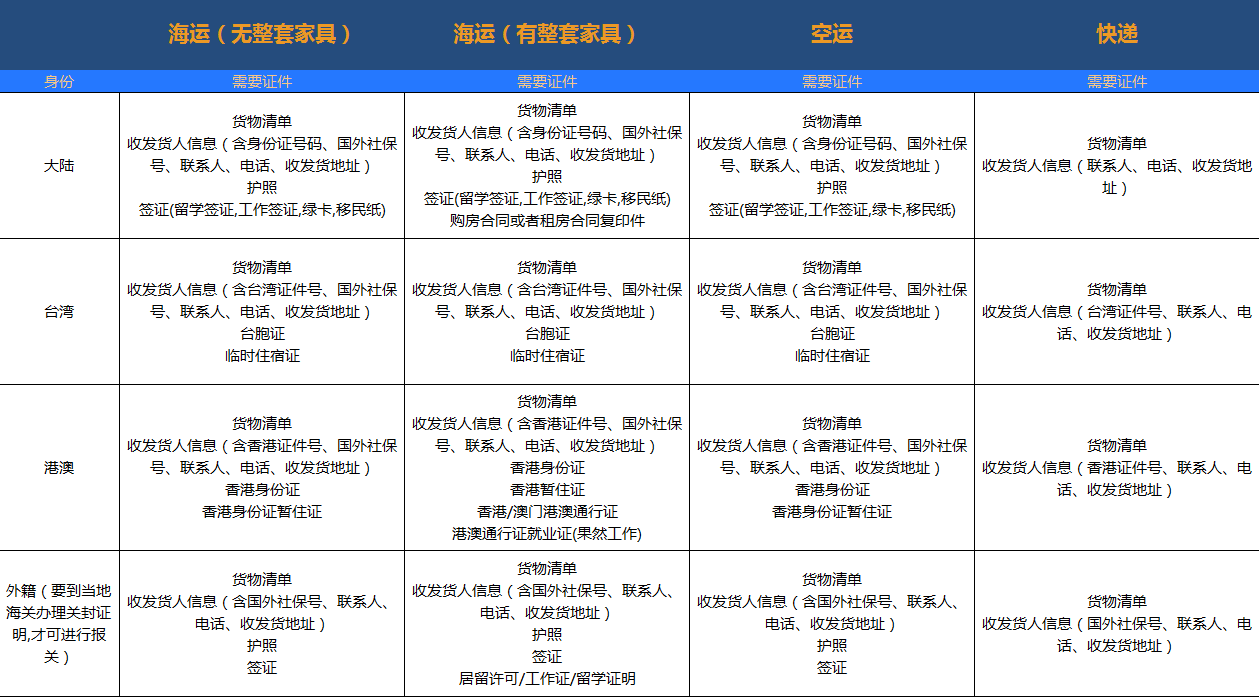 證件就是私人的身份證明,旅游簽證,探親簽證等無法用于攜帶大量貨物。需要提前跟業務員確認證件是否可以用來清關想要運輸的貨物以及免稅政策